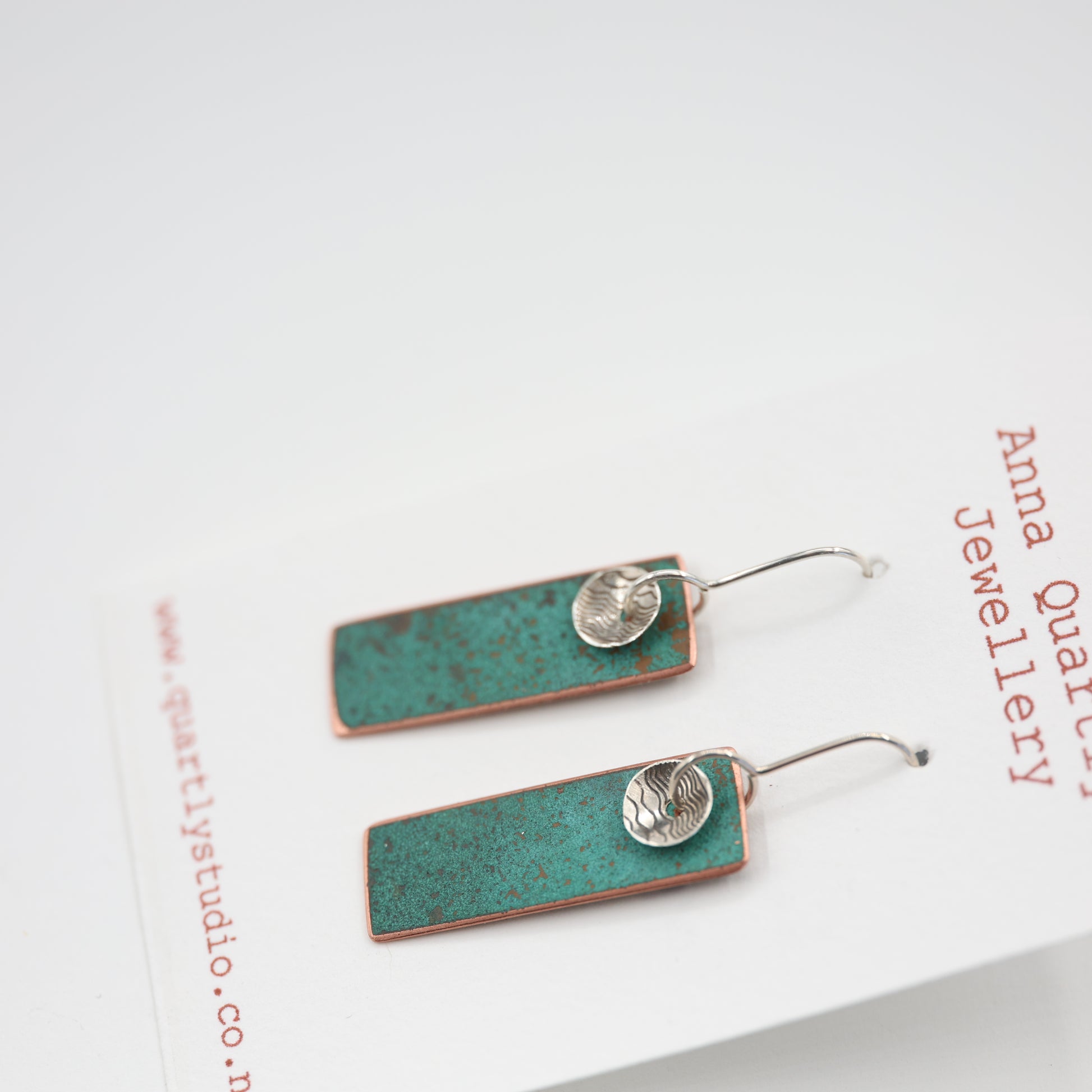 The copper has been soaked with different variations of vinegar and salt, then left to dry to create natural patterns and colours then sealed to make it last.
