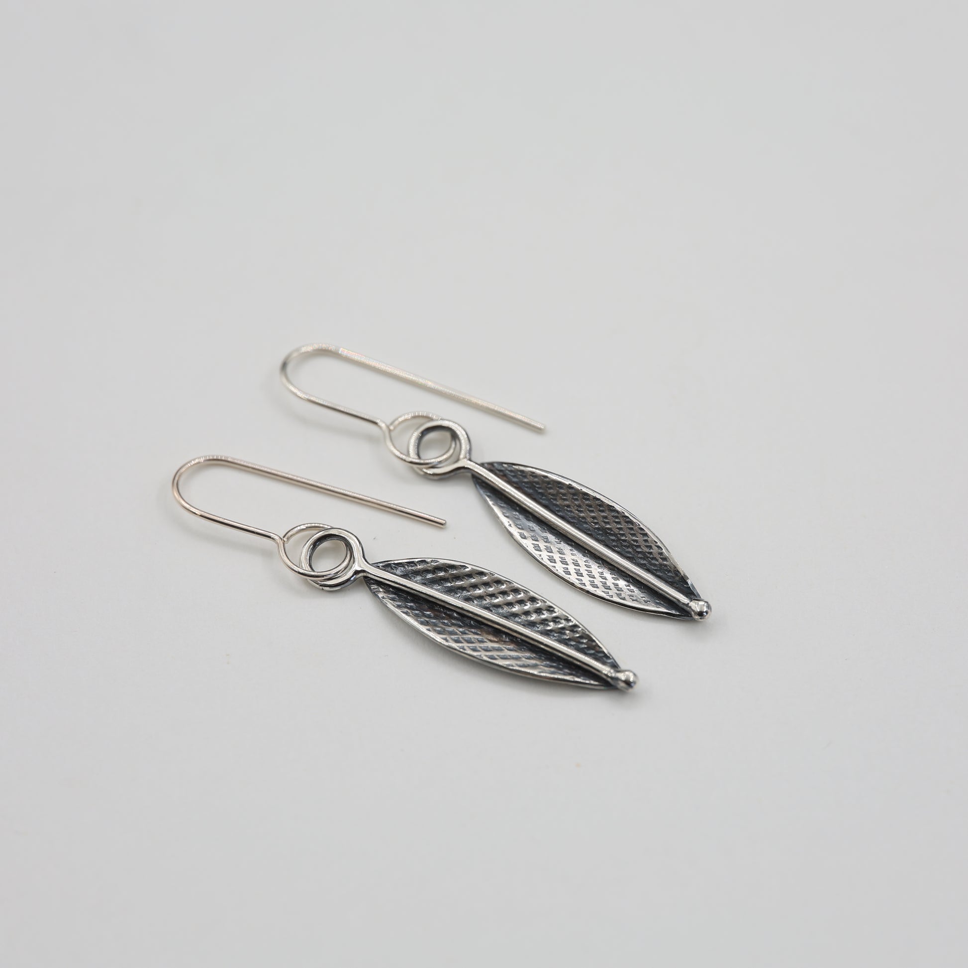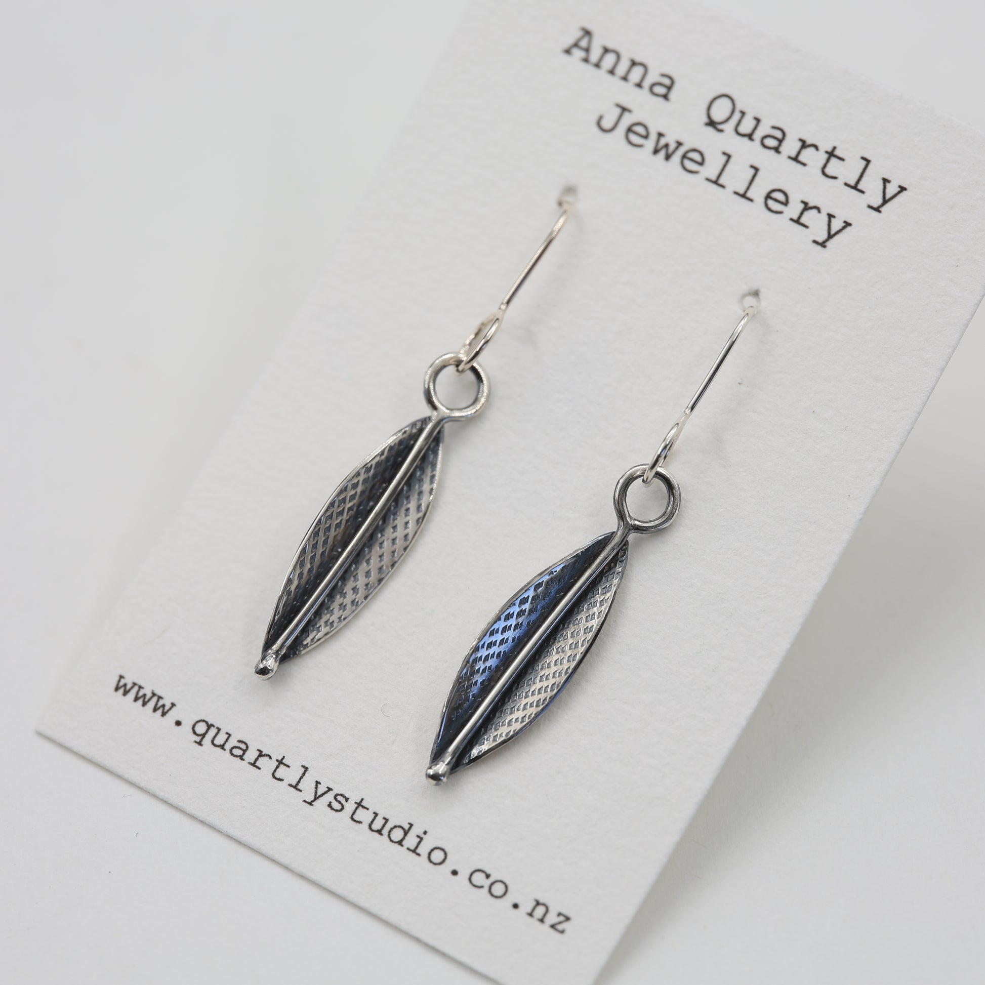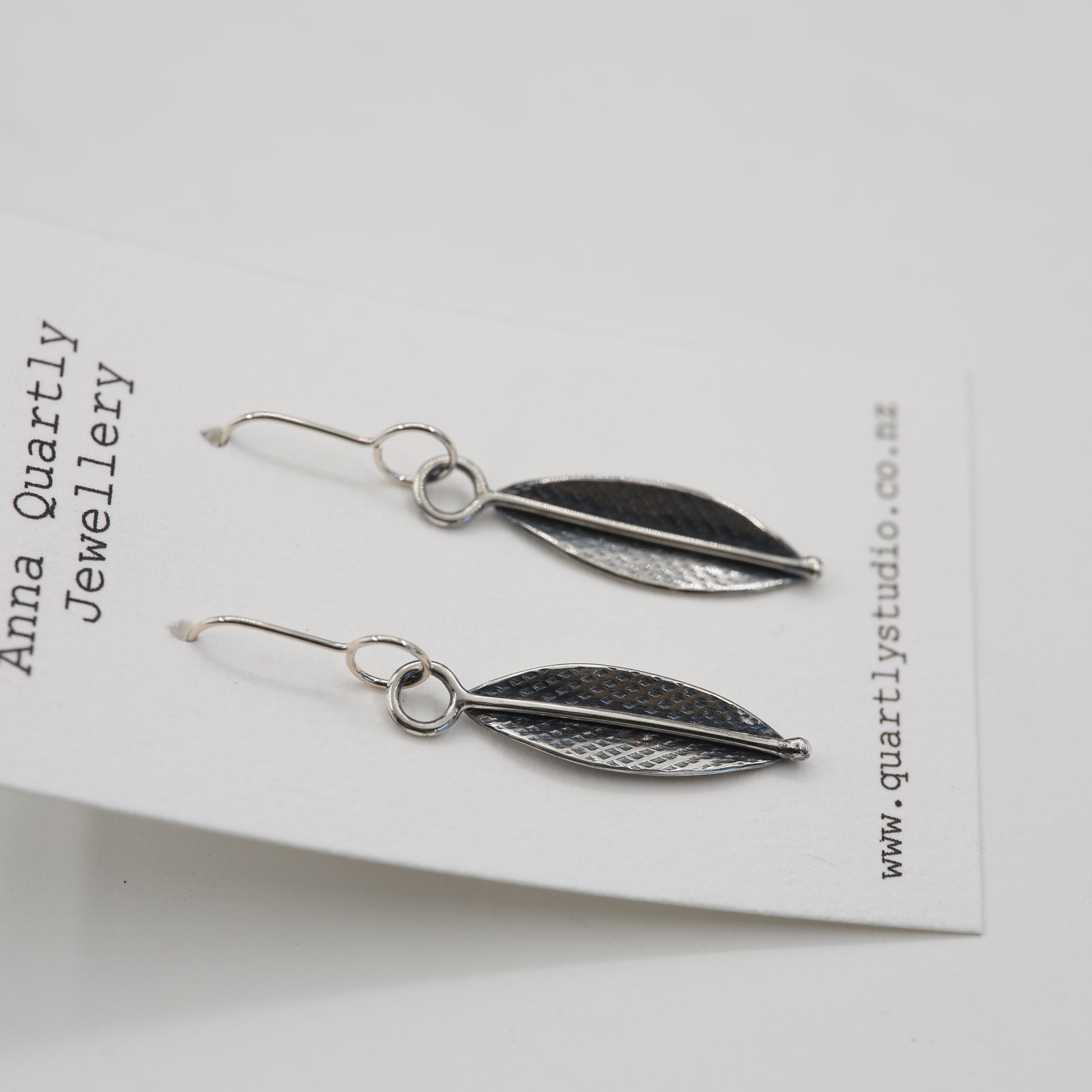 Theses leaves are made with a thick silver wire running down the middle to give them a contemporary bold look.