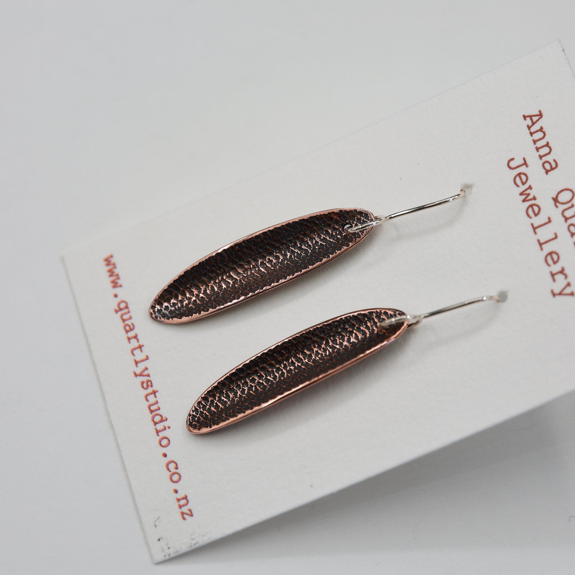 Texture Copper Leaf Earrings/ Long